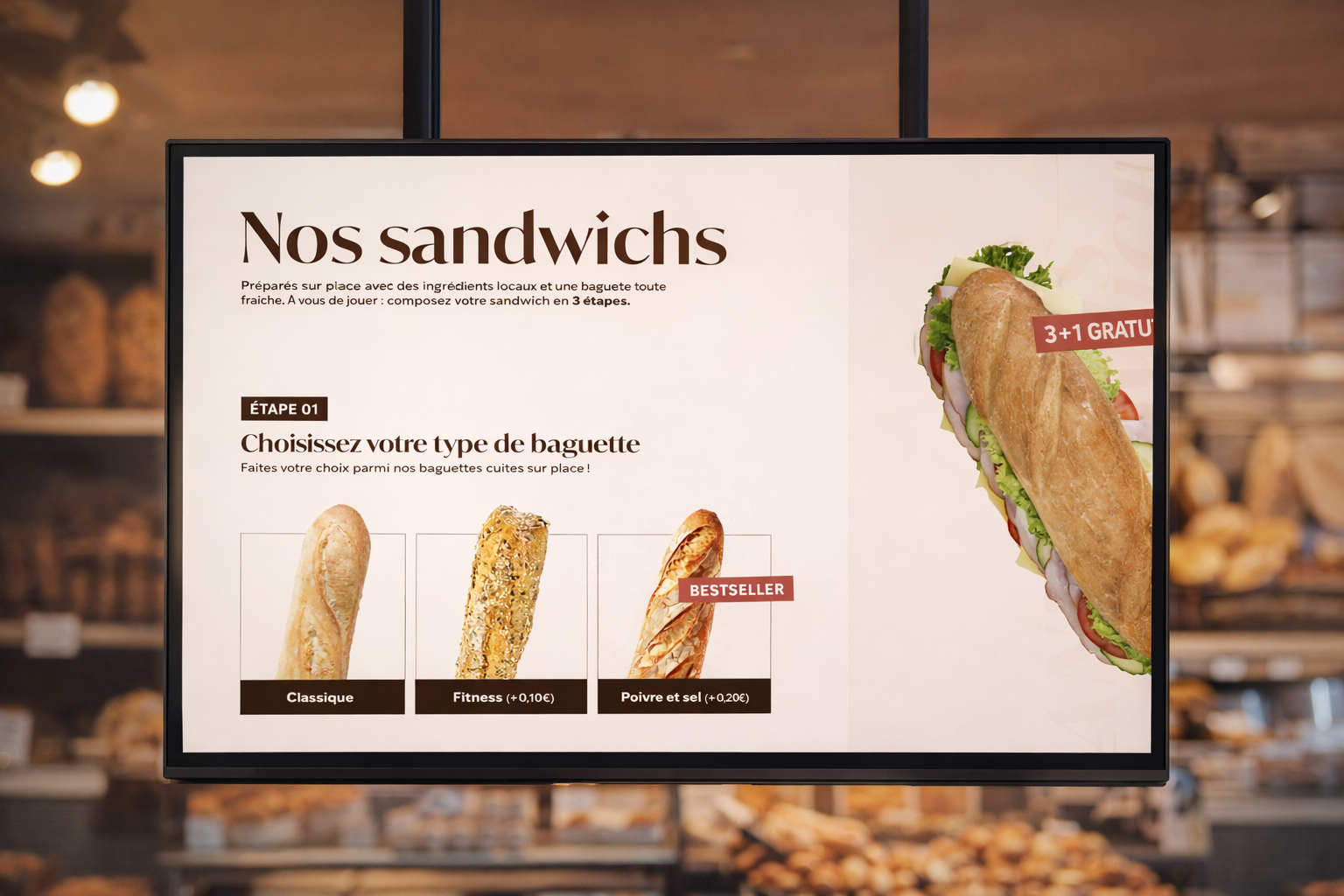 Le design mêle matières brutes, tons chaleureux et typographie intemporelle, avec une touche contemporaine pour traduire la modernité du réseau. Les couleurs jouent une partition douce et authentique : beiges et bruns pour la chaleur, avec une touche de rouge profond pour dynamiser les temps forts et les promotions.
